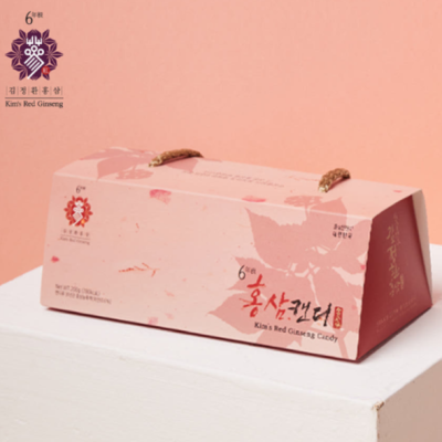 | 원재료명 및 함량 | 물엿, 설탕, 기타설탕(흑설탕), 한천[(분말한천, 꼬시래기-인도네시아산) 국내산], 전분가공품 [오부라이트분말4 (감자전분), 레시틴 (해바라기), 국내산], 6년근 홍삼농축액 (홍삼성분 70mg/g이상, 고형분 60% 이상, 국산) 0.5% [원료삼 배합 비율: 홍삼근류 70%, 홍미삼류 30%], 고구마전분(국내산), 허브향(허브오일) |